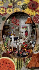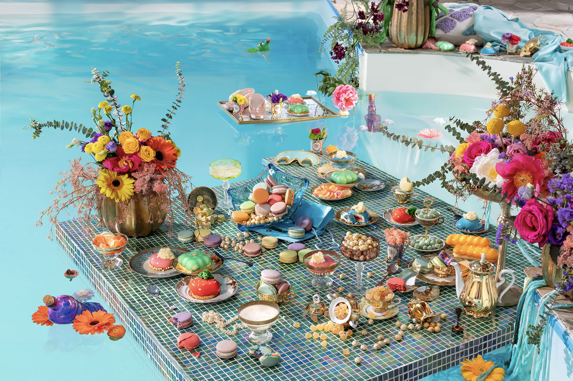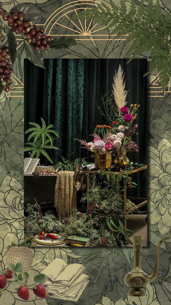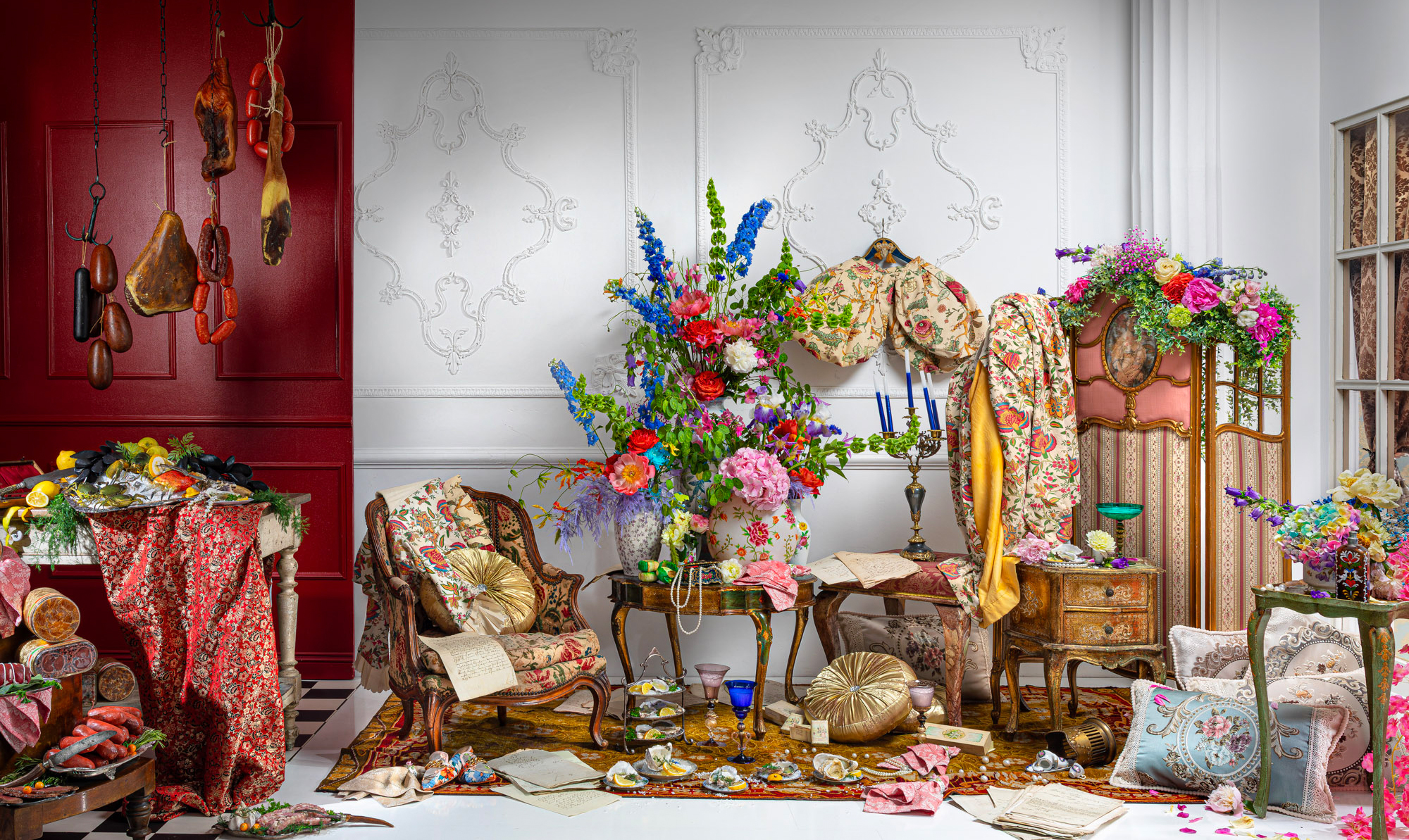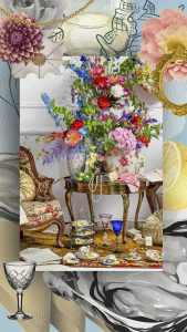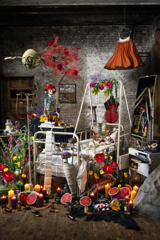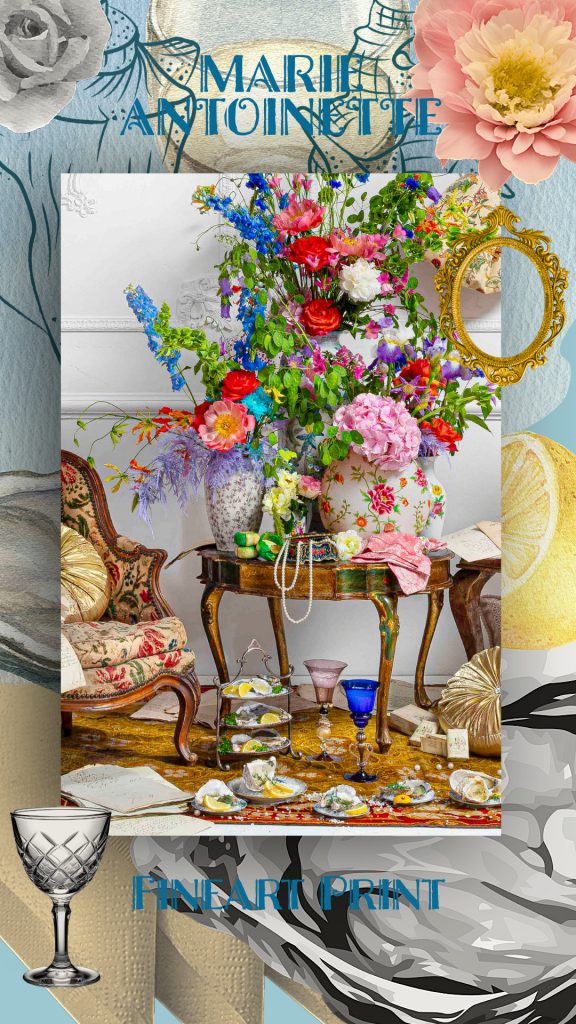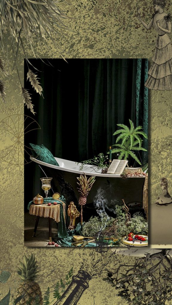 Die Stillleben Kunstwerke verbinden die Pracht und Dramatik der alten Meister mit einer modernen Perspektive. Die aufwendig gestalteten Szenen sind voller Liebe zum Detail, die in eine faszinierende Fantasiewelt entführen. Ob inspiriert von Ikonen wie Marie Antoinette oder Frida Kahlo, den Goldenen Zwanzigern, einem verwilderten „Garten“ der 40er Jahre oder „Frühstück bei Tiffany“