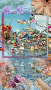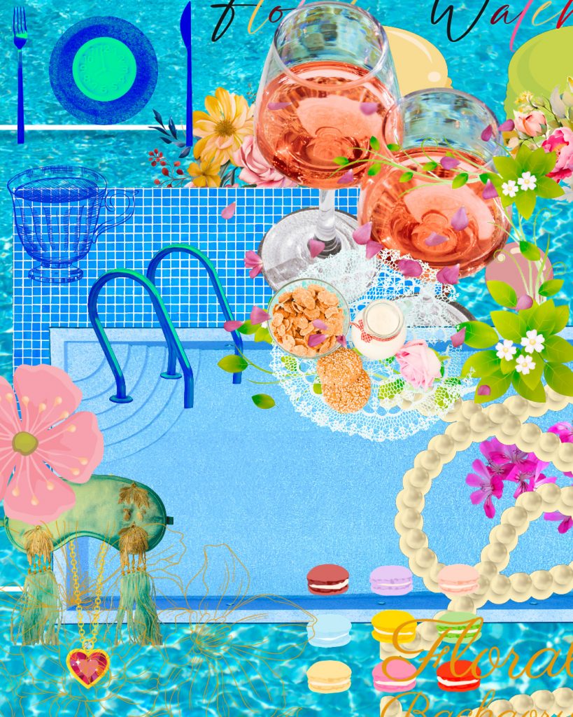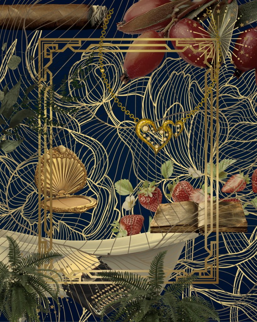 Hinter dem scheinbaren Überfluss und dem lauten Lachen verbirgt sich eine tiefe Sehnsucht. Die Atmosphäre soll an Holly Golightly aus „Frühstück bei Tiffany“ erinnern – eine Figur, die für das Streben nach Schönheit und Flucht aus der Realität steht. Farben, Formen, Objekte – sind die Relikte vergangener Party Nächte – gleich einer Flaschenpost im Meer der Erinnerung, die gelesen werden will.